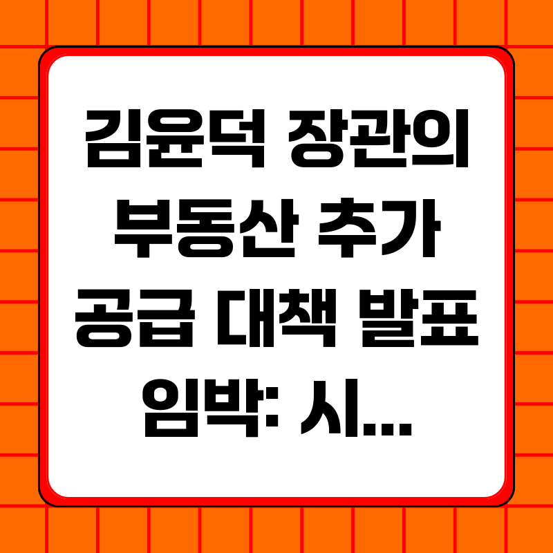 최근 부동산 시장의 변동성이 커지고 있는 가운데, 김윤덕 국토교통부 장관이 이달 말 추가 공급 대책 발표를 예고하면서 시장의 관심이 집중되고 있습니다. 이번 대책 발표는 주택 가격 안정과 실수요자 보호를 위한 정부의 강력한 의지를 보여주는 중요한 계기가 될 것으로 전망되며, 시장에 어떠한 영향을 미칠지 귀추가 주목됩니다.➡️ 원본 포스팅( 김윤덕 장관 1월 말 추가 공급대책 ... ) 보러가기김 장관의 이번 발표는 최근 몇 년간 지속된 주택 가격 상승, 특히 수도권 지역의 급등세를 억제하기 위한 정부의 노력의 일환으로 풀이됩니다. 저금리 시대와 풍부한 유동성, 그리고 공급 부족에 대한 우려가 복합적으로 작용하여 주거 불안정이 심화되었고, 이에 정부는 다양한 부동산 정책을 시행해 왔지만, 아직까지 시장의 ..