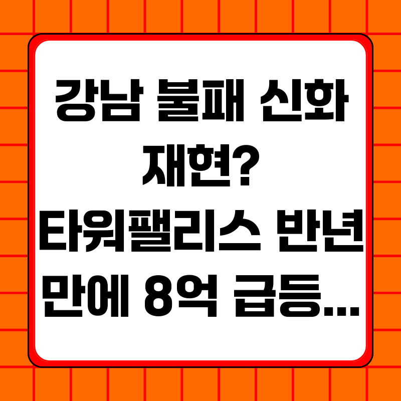 최근 부동산 시장에서 가장 뜨거운 감자 중 하나는 단연 타워팰리스입니다. 불과 반년 만에 8억 원이라는 천문학적인 가격 상승을 기록하며, 일각에서는 ‘강남 불패 신화’의 부활을 점치고 있습니다. 이러한 급등 현상은 단순한 행운일까요, 아니면 숨겨진 투자 기회의 신호일까요? 지금부터 타워팰리스 가격 급등의 배경을 심층적으로 분석하고, 투자 전략을 모색해 보고자 합니다.
