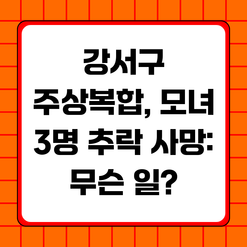 최근 강서구의 한 주상복합 건물에서 발생한 모녀 3명의 추락 사망 사건은 많은 이들에게 충격과 안타까움을 안겨주었습니다. 단순 사고로 치부하기에는 석연치 않은 구석이 많습니다. 이 사건을 통해 우리는 현대 사회의 어두운 단면과 개인의 심리적 고통에 대해 다시 한번 생각해 보게 됩니다. 과연 이 비극적인 사건은 단순한 사고였을까요? 아니면 감춰진 진실이 있는 걸까요?