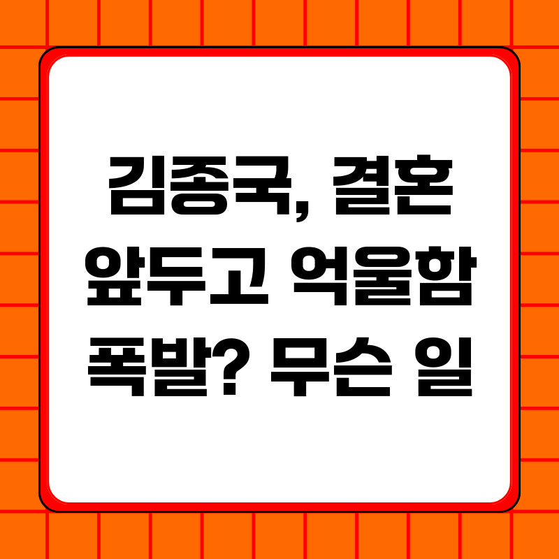 김종국, 결혼 앞두고 억울함 토로? 숨겨진 속사정 심층 분석