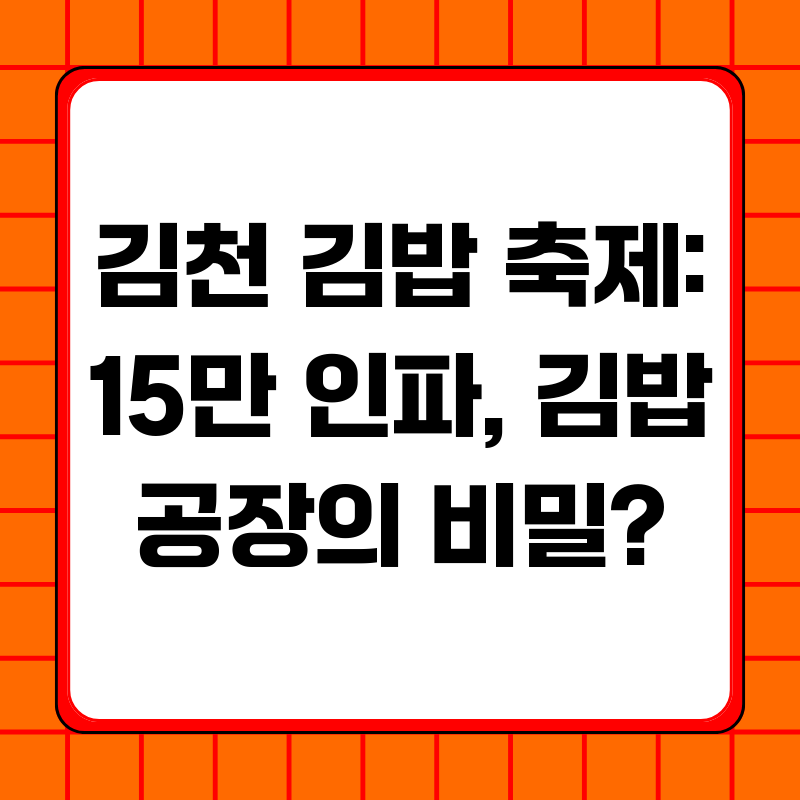 주말 동안 경북 김천에서 열린 김밥 축제에 무려 15만 명의 인파가 몰려들었다는 소식입니다. 작년 '김밥 없는 축제'라는 오명을 씻고, 올해는 성공적으로 축제를 마쳤다고 하는데요. 단순한 지역 축제를 넘어, 김천시의 혁신적인 시도와 숨겨진 성공 전략을 심층적으로 분석해 보고, 앞으로 나아가야 할 방향을 제시하고자 합니다.