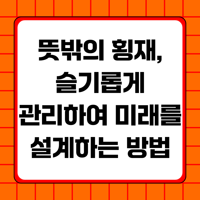 살다 보면 예상치 못한 보너스를 받거나, 복권에 당첨되는 행운이 찾아올 수 있습니다. 하지만 뜻밖의 횡재는 양날의 검과 같아서, 순간의 기쁨에 취해 계획 없이 소비하거나 검증되지 않은 곳에 투자하면 오히려 재정적인 어려움을 겪을 수 있습니다. 이 글에서는 예상치 못한 돈을 받았을 때, 어떻게 하면 현명하게 관리하여 미래를 위한 든든한 자산으로 만들 수 있는지 구체적인 방법들을 제시합니다.