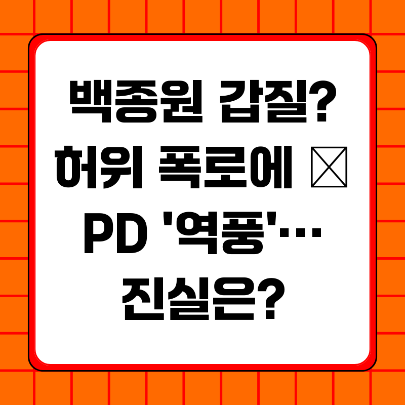 최근 유명 유튜버이자 전직 MBC PD인 김재환 씨가 백종원 더본코리아 대표의 갑질 의혹을 제기하며 온라인을 뜨겁게 달궜습니다. 하지만 확인 결과, 그의 주장은 사실과 다른 허위 폭로였음이 드러나면서 오히려 역풍을 맞고 있습니다. 단순한 해프닝으로 치부하기에는 그 파장이 크고, 우리 사회에 시사하는 바가 적지 않습니다.