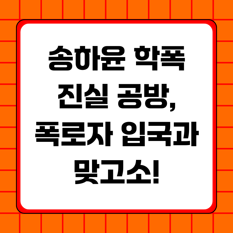 최근 배우 송하윤 씨의 학폭 논란이 다시 불거지면서 온라인이 뜨겁게 달아오르고 있습니다. 최초 폭로자의 입국과 맞고소 예고는 단순한 연예계 이슈를 넘어, 우리 사회의 학교 폭력 문제에 대한 심각한 경종을 울리고 있습니다. 과연 이번 사건은 어떻게 전개될 것이며, 우리는 이 사건을 통해 무엇을 배워야 할까요?