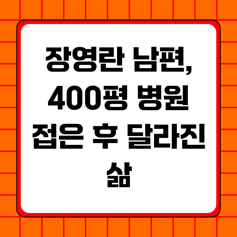 장영란 남편, 400평 병원 정리 후 찾은 진짜 행복? 속사정 심층 분석