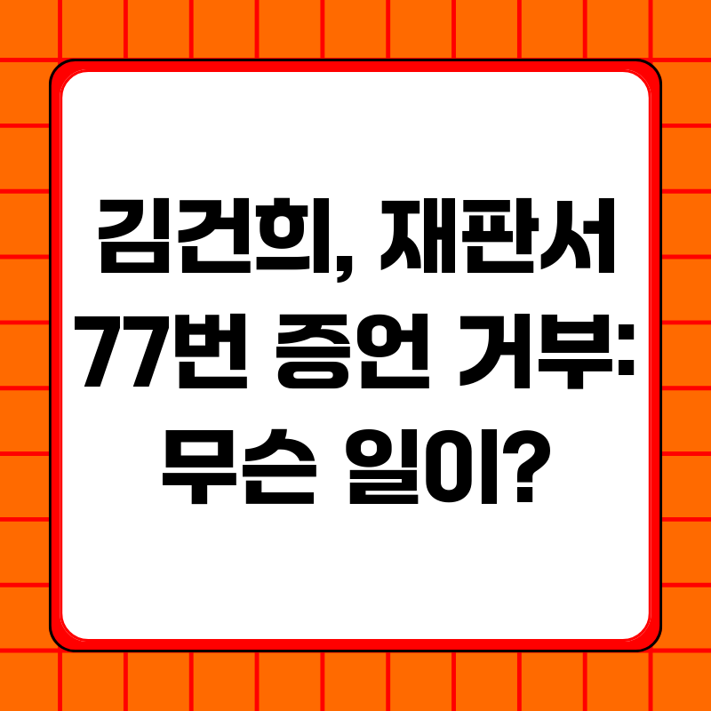 김건희 여사, 77번 증언 거부 속 숨겨진 의미와 파장최근 김건희 여사가 '건진법사' 전성배 씨의 재판에 증인으로 출석하여 77번이나 증언을 거부한 사실이 큰 파장을 일으키고 있습니다. 단순한 뉴스 기사를 넘어, 이 사건이 우리 사회에 던지는 메시지는 무엇일까요? 왜 김 여사는 그토록 많은 질문에 침묵을 선택했을까요? 그리고 이러한 침묵은 앞으로 어떤 결과를 가져올까요? 이 글에서는 김건희 여사 증언 거부 사건의 배경, 숨겨진 의미, 그리고 앞으로의 전망까지 심층적으로 분석해 보고자 합니다.사건의 배경: '건진법사' 전성배 재판과 김건희 여사의 증인 출석이번 사건의 발단은 '건진법사'로 알려진 전성배 씨의 특정범죄 가중처벌법상 알선수재 및 정치자금법 위반 혐의 재판입니다. 김건희 여사는 이 재판에 증인으..