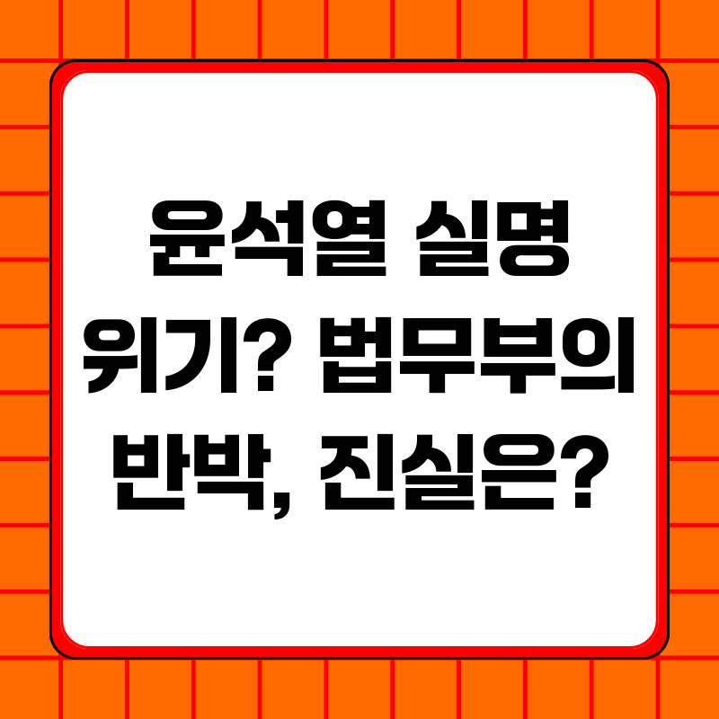 윤석열 실명 위기 논란, 법무부 반박의 진실은?최근 윤석열 전 대통령의 건강 상태를 둘러싼 논란이 뜨겁습니다. 지지층에서는 '실명 위기'라는 극단적인 표현까지 사용하며 우려를 표하고 있지만, 법무부는 즉각적으로 이를 반박하고 나섰습니다. 과연 진실은 무엇일까요? 단순한 건강 문제일까요, 아니면 정치적 공방의 연장선일까요? 본 글에서는 이번 논란을 심층적으로 분석하고, 그 이면에 숨겨진 의미를 파헤쳐 보고자 합니다.논란의 배경: '실명 위기' 주장의 등장논란은 윤석열 전 대통령 측에서 "당뇨망막증 진단을 받았으나, 3개월째 관련 시술을 받지 못해 실명 위험이 커지고 있다"고 주장하면서 시작되었습니다. 이는 지지자들의 불안감을 증폭시키고, 동시에 정부의 '인권 탄압' 프레임을 씌우려는 시도로 해석될 수 있습..