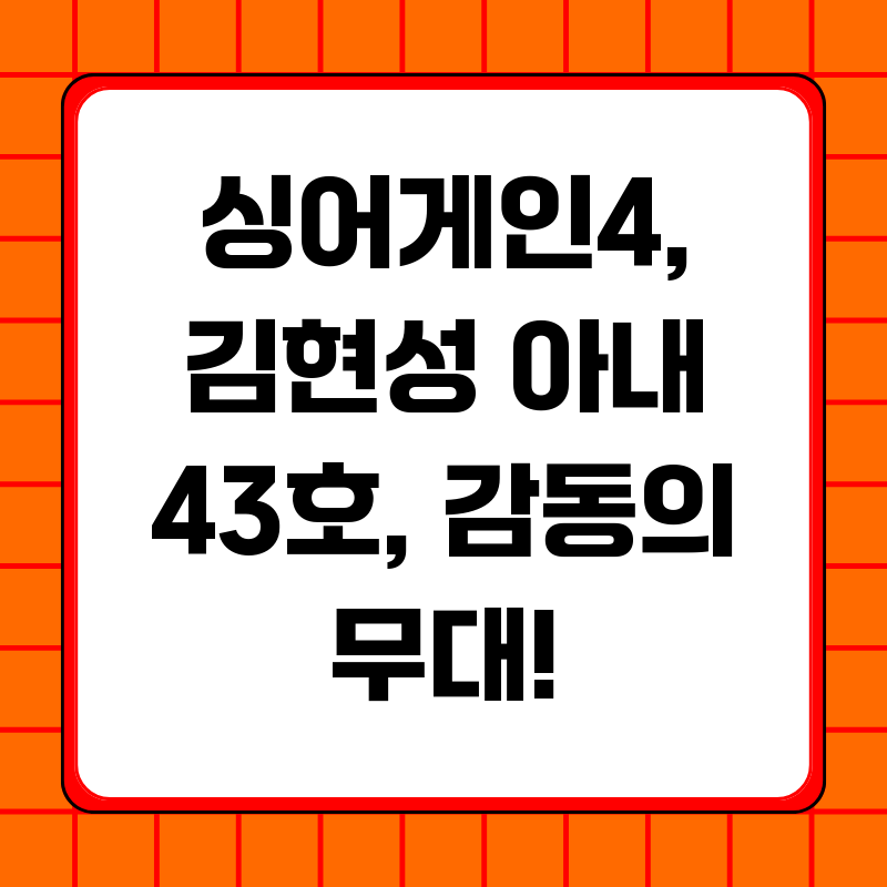 김현성 아내, '싱어게인4' 올어게인 감동! 숨겨진 성공 요인은?JTBC '싱어게인4' 첫 방송부터 화제를 모은 43호 가수, 그녀는 가수 김현성의 아내였습니다. 남편의 응원을 등에 업고 무대에 오른 그녀는 '올어게인'을 받으며 성공적인 2라운드 진출을 알렸습니다. 단순한 '내조의 여왕'을 넘어선 그녀의 감동적인 무대 뒤에는 어떤 숨겨진 성공 요인이 있었을까요?'싱어게인4'를 감동으로 물들인 43호 가수'싱어게인'은 무명 가수들에게 다시 한번 꿈을 펼칠 기회를 제공하는 오디션 프로그램입니다. 시즌4 첫 방송에서는 태연, 코드쿤스트, 규현, 이해리, 백지영, 김이나, 윤종신, 임재범 등 화려한 심사위원단이 출연하여 참가자들의 무대를 심사했습니다. 특히 '홀로서기' 조에 등장한 43호 가수는 뛰어난 가창력과..