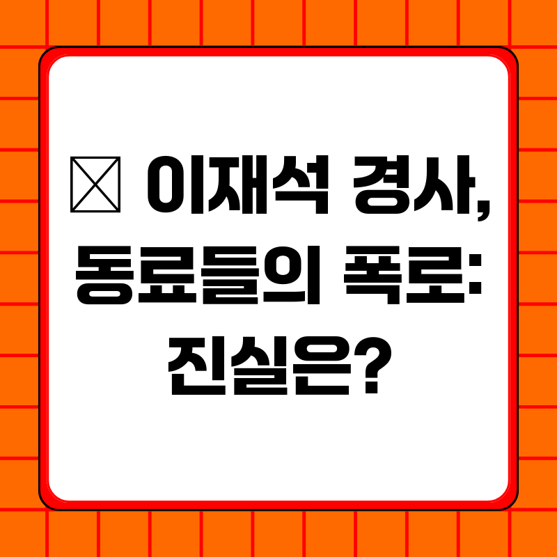 故 이재석 경사 죽음, 은폐 의혹 진실은?인천 갯벌에서 70대 중국인을 구조하려다 순직한 故 이재석 경사의 안타까운 소식이 전해진 가운데, 사고 당시 함께 근무했던 동료 경찰관들이 해경 내부의 은폐 시도 의혹을 폭로하며 파장이 일고 있습니다. 단순한 사고사를 넘어 조직적인 은폐 시도가 있었다는 주장은 국민적 공분을 불러일으키고 있으며, 사건의 진실을 규명해야 한다는 목소리가 높아지고 있습니다. 과연 무엇이 진실일까요? 이 글에서는 관련 내용을 심층적으로 분석하고, 앞으로의 전망과 우리가 주목해야 할 점들을 짚어보겠습니다.사건의 개요: 영웅적 희생 뒤에 숨겨진 의혹故 이재석 경사는 2025년 9월, 인천의 한 갯벌에서 70대 중국인을 구조하려다 안타깝게 순직했습니다. 그의 용감한 행동은 많은 이들에게 감동..
