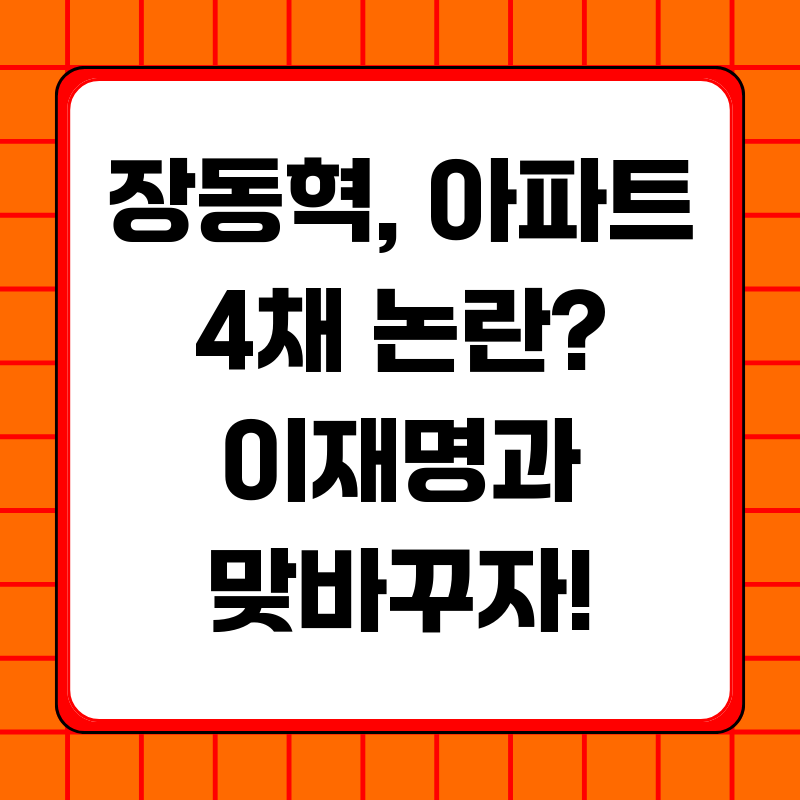 장동혁 아파트 논란, 이재명과 빅딜 제안? 정치적 노림수 심층 해부최근 장동혁 국민의힘 대표의 '아파트 4채' 논란이 정치권을 뜨겁게 달구고 있습니다. 단순한 해명을 넘어 이재명 대통령에게 '분당 아파트와 맞교환'이라는 파격적인 제안까지 던지며 논란은 더욱 증폭되고 있는데요. 과연 장 대표의 이러한 행보는 단순한 해명을 넘어선 정치적 노림수가 숨어있는 것은 아닐까요? 이 글에서는 장동혁 대표의 아파트 논란과 이재명 대통령과의 맞교환 제안에 대한 배경, 숨겨진 의미, 그리고 정치적 파장을 심층적으로 분석해보고자 합니다.장동혁 아파트 논란, 왜 불거졌나?논란의 발단은 더불어민주당의 "부동산 싹쓸이 특별위원장" 비판이었습니다. 이에 장동혁 대표는 즉각 기자간담회를 열어 적극 해명에 나섰는데요. 그는 자신이 보..