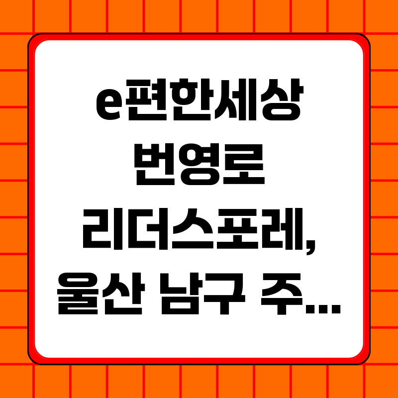 울산 남구의 새로운 주거 랜드마크를 목표로 하는 DL이앤씨의 'e편한세상 번영로 리더스포레' 분양 소식이 뜨거운 관심을 받고 있습니다. 복잡한 부동산 시장 상황 속에서 성공적인 내 집 마련을 위해서는 정확한 정보 습득과 세심한 분석이 필수적입니다. 본 글에서는 e편한세상 번영로 리더스포레 분양 정보를 심층적으로 분석하고, 투자 가치와 성공적인 청약 전략을 꼼꼼하게 살펴보겠습니다. 특히, 최근 울산 부동산 시장의 동향과 남구의 잠재력을 고려하여, 이 아파트가 단순한 주거 공간을 넘어 미래 가치를 선점할 기회가 될 수 있을지 면밀히 분석합니다.➡️ 원본 포스팅( e편한세상 번영로 리더스포레 분양 정... ) 보러가기e편한세상 번영로 리더스포레는 DL이앤씨가 울산 남구에 선보이는 주거 단지로, 뛰어난 입지와 ..