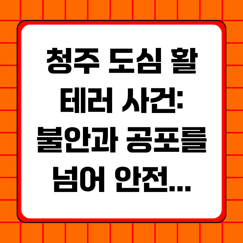 최근 청주 도심에서 발생한 활 테러 사건은 우리 사회에 큰 충격을 안겨주었습니다. 한밤중 산책하던 시민을 향해 날아온 화살은 단순한 장난으로 치부할 수 없는 심각한 범죄 행위입니다. 이번 사건을 통해 우리는 안전하다고 믿었던 일상 공간에서조차 예상치 못한 위협에 노출될 수 있다는 사실을 깨닫게 되었습니다. 이제 우리는 사건의 전말을 파악하고, 유사한 사건의 재발을 막기 위한 근본적인 해결책을 모색해야 합니다. 시민들의 불안감을 해소하고 안전한 사회를 만들기 위한 노력이 시급합니다.➡️ 원본 포스팅( 청주 도심 활 테러? CCTV 속 남... ) 보러가기사건은 지난 7일 밤, 청주시 상당구 청소년광장에서 발생했습니다. 50대 여성이 반려견과 산책하던 중 누군가 쏜 화살이 여성과 반려견 근처에 꽂힌 것입니다..