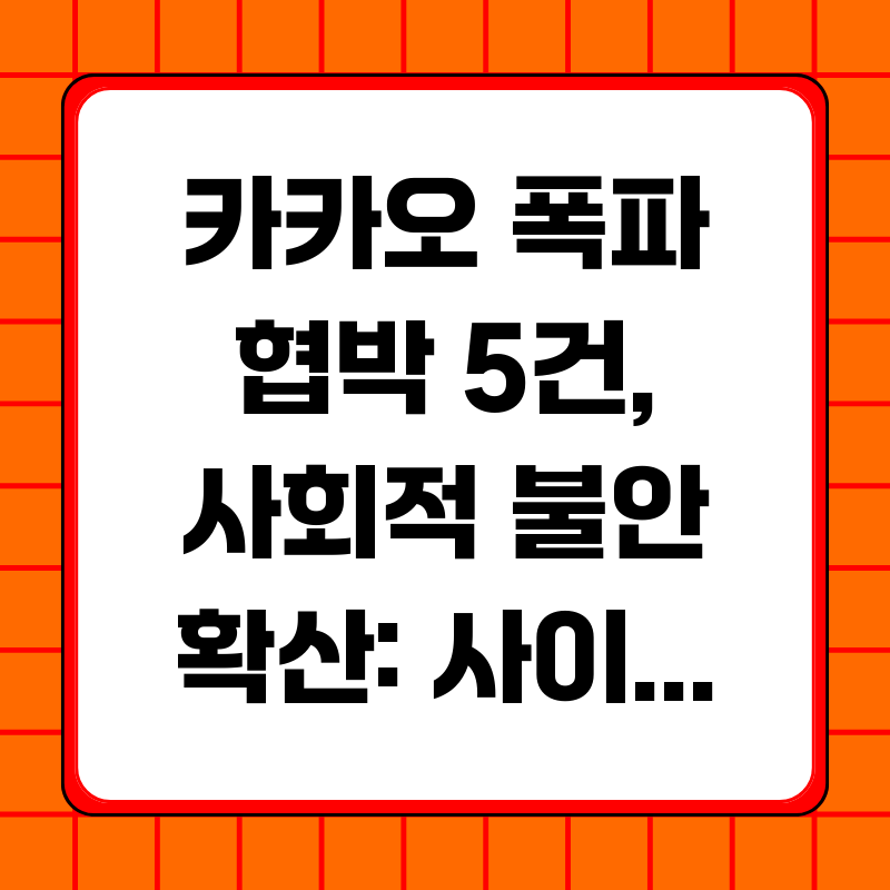 최근 카카오를 비롯한 국내 주요 기업들을 겨냥한 연이은 폭파 협박으로 인해 사회 전반에 걸쳐 불안감이 고조되고 있습니다. 단순한 장난으로 치부하기에는 그 수법이 대담해지고 빈도가 잦아지고 있어, 기업과 사회 전체의 안전 시스템을 재점검하고 강화해야 할 시점입니다. 잇따른 카카오 폭파 협박 사건의 배경과 원인을 심층적으로 분석하고, 유사한 사건의 재발을 막기 위한 실질적인 대응 전략을 모색합니다.➡️ 원본 포스팅( 카카오 폭파 협박 5번째, 불안감 커... ) 보러가기2025년 12월, 카카오에 대한 폭파 협박이 총 5차례나 발생하면서 단순한 해프닝을 넘어 사회적인 문제로 부상했습니다. 12월 15일에 첫 번째 협박이 발생한 이후, 17일, 18일, 21일, 23일에 연이어 협박이 이어졌습니다. 협박 내용..
