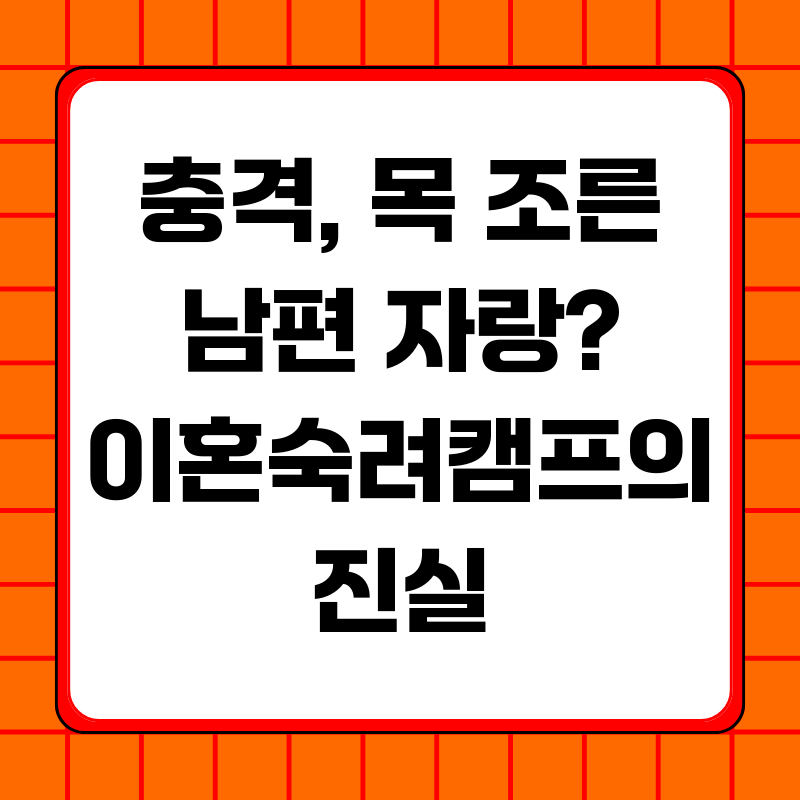 충격! 이혼 캠프 속 폭력 남편, 자랑까지? 진실 파헤치기최근 JTBC 예능 프로그램 '이혼숙려캠프'에 출연한 한 부부의 이야기가 논란이 되고 있습니다. 남편의 충격적인 언행과 폭력적인 행동이 여과 없이 방송되면서 시청자들의 분노를 자아냈는데요. 단순한 부부 갈등을 넘어선 심각한 사회 문제를 드러낸 이번 사건, 과연 우리는 무엇을 봐야 할까요?'이혼숙려캠프' 15기 부부, 논란의 중심에 서다'이혼숙려캠프'는 다양한 이유로 이혼을 고민하는 부부들이 출연하여 숙려 기간을 갖는 프로그램입니다. 15기로 출연한 소위 '지팔지꼰(자기 팔자 자기가 꼰다)' 부부의 남편 A씨는 방송 초반부터 아내에 대한 존중 없는 태도와 외도, 폭력적인 성향을 드러내며 논란을 일으켰습니다.방송에서 A씨는 아내의 외모를 비하하고, 외..