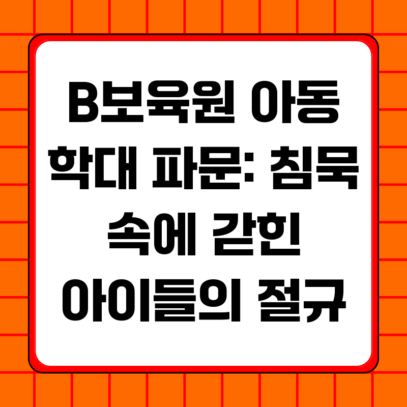 전라북도 B보육원에서 발생한 아동 학대 사건은 단순한 시설 내 문제가 아닌, 우리 사회 전체의 아동 보호 시스템에 대한 심각한 경종을 울리고 있습니다. 아이들에게 가해진 끔찍한 행위들은 그들의 삶에 깊은 상처를 남겼으며, 우리 모두의 책임감을 일깨워줍니다. 이 사건을 통해 우리는 아동 학대의 근본적인 원인을 파악하고, 재발 방지를 위한 실질적인 대책을 강구해야 할 것입니다.➡️ 원본 포스팅( B보육원 아동학대 충격 증언 "수학 ... ) 보러가기연합뉴스의 보도에 따르면, B보육원 출신 청년들은 2025년 10월부터 잇따른 인터뷰를 통해 충격적인 학대 경험을 상세히 증언했습니다. 그들의 이야기는 단순한 체벌을 넘어선 신체적, 정서적 학대의 실상을 적나라하게 보여주며, 듣는 이로 하여금 분노와 슬픔을 금치 ..